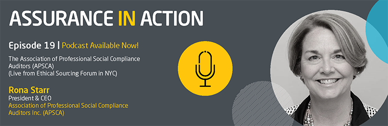 In this episode of Assurance in Action, Rona Starr, President & CEO of APSCA, discusses her organisation and how it relates to the compliance auditing industry. Ever-growing global supply chains pose many issues when it comes social and labour compliance. As the leading compliance auditing industry voice, APSCA aims to mitigate those issues through the promotion of consistent, professional, and credible practices.
