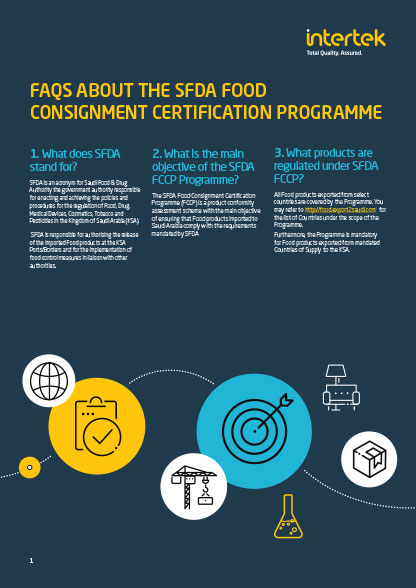 Intertek in Saudi Arabia is accredited by SASO to issue Product Certificate of Conformity and Shipment Certificate of Conformity for the SASO SALEEM programme and the Saudi Food and Drug Authority (SFDA) Cosmetics, Perfume, Personal Care and Food products.