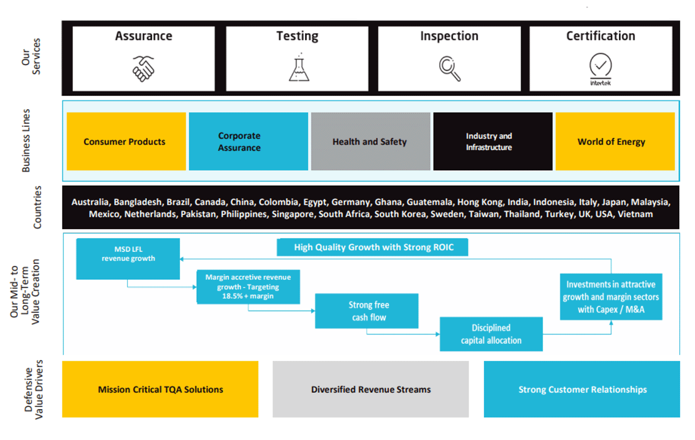 In 2023, as part of our Capital Markets event in London we launched our AAA growth strategy. The idea behind it is to deliver AAA value for all stakeholders and be the most trusted partner for Total Quality Assurance. Our aim is to deliver MSD LFL revenue growth at CCY, margin accretive revenue growth (18.5%+ margin target, announced at our FY24 results), strong FCF, and disciplined capital allocation in high growth and high margin sectors.