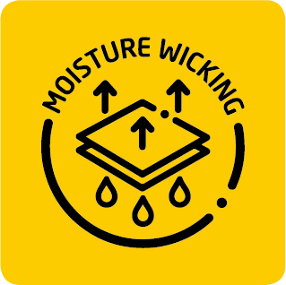 Moisture Wicking material promotes moisture diusion, enabling it to dry more quickly when wetted to provide comfort to the wearer.